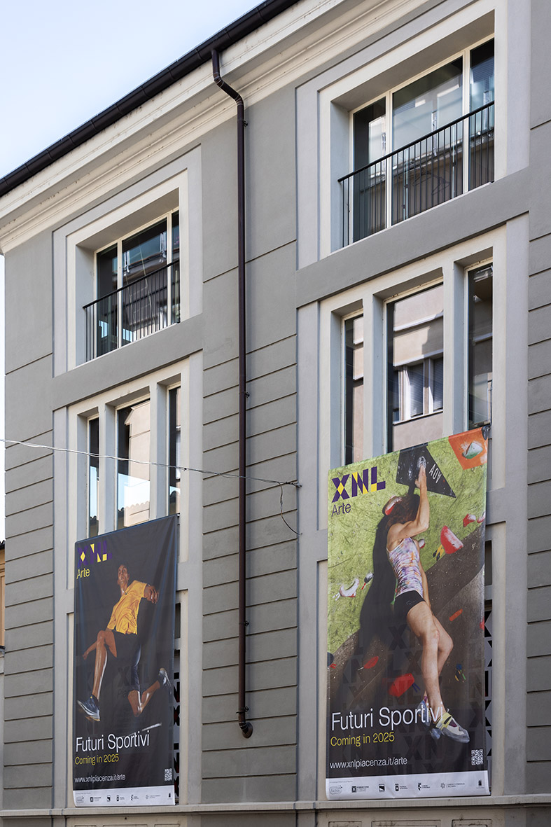 In occasione dello storico passaggio del Tour de France nella città di Piacenza, XNL Arte annuncia in anteprima il progetto che vedrà impegnata l’istituzione nel 2025 e per farlo saluta il pubblico, gli sportivi e le sportive agghindando il palazzo con i ritratti di tre figure dello sport e dell’arte internazionali legate al territorio. Andrea Dallavalle, saltatore, Savina Nicelli, arrampicatrice e Giacomo Rovero,danzatore, hanno generosamente offerto la loro immagine per una prima iniziale comunicazione di un progetto profondamente orientato alla trasmissione della cultura dello sport come fatto artistico.